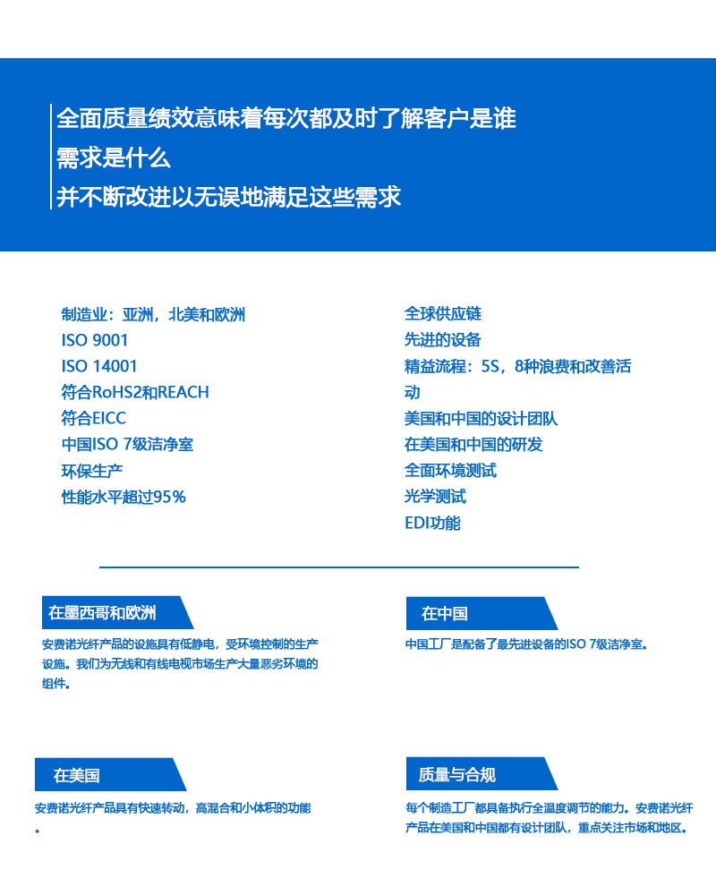 安費(fèi)諾總部位于美國康涅狄格州,集團(tuán)在全球?qū)嵤┍镜鼗瘧?zhàn)略,共在全球設(shè)立90多間工廠及100多個(gè)銷售辦事處,全球員工總數(shù)達(dá)30000人,直接為各大洲的客戶提供產(chǎn)品和實(shí)施本地化服務(wù)在世界上安費(fèi)諾是其中一個(gè)最大的制造商的互連產(chǎn)品。公司設(shè)計(jì)、制造和市場電氣、電子和光纖連接器,同軸和扁平帶狀電纜和互連系統(tǒng)